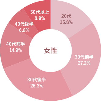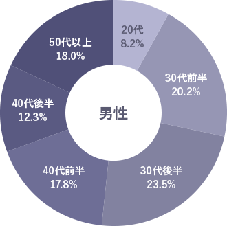 会員の年齢は、30代前半~40代前半がボリュームゾーンです。