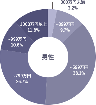 男性の公開年収は、500~699万円がボリュームゾーン。