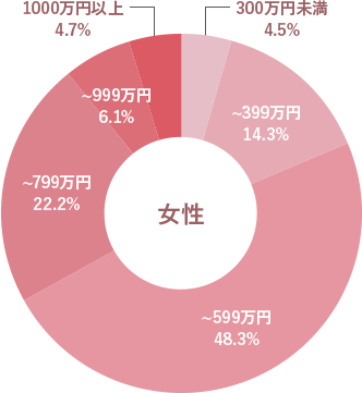 国税庁発表の民間企業給与所得者の平均年収は男性587万円、女性333万円(令和6年)ですので、